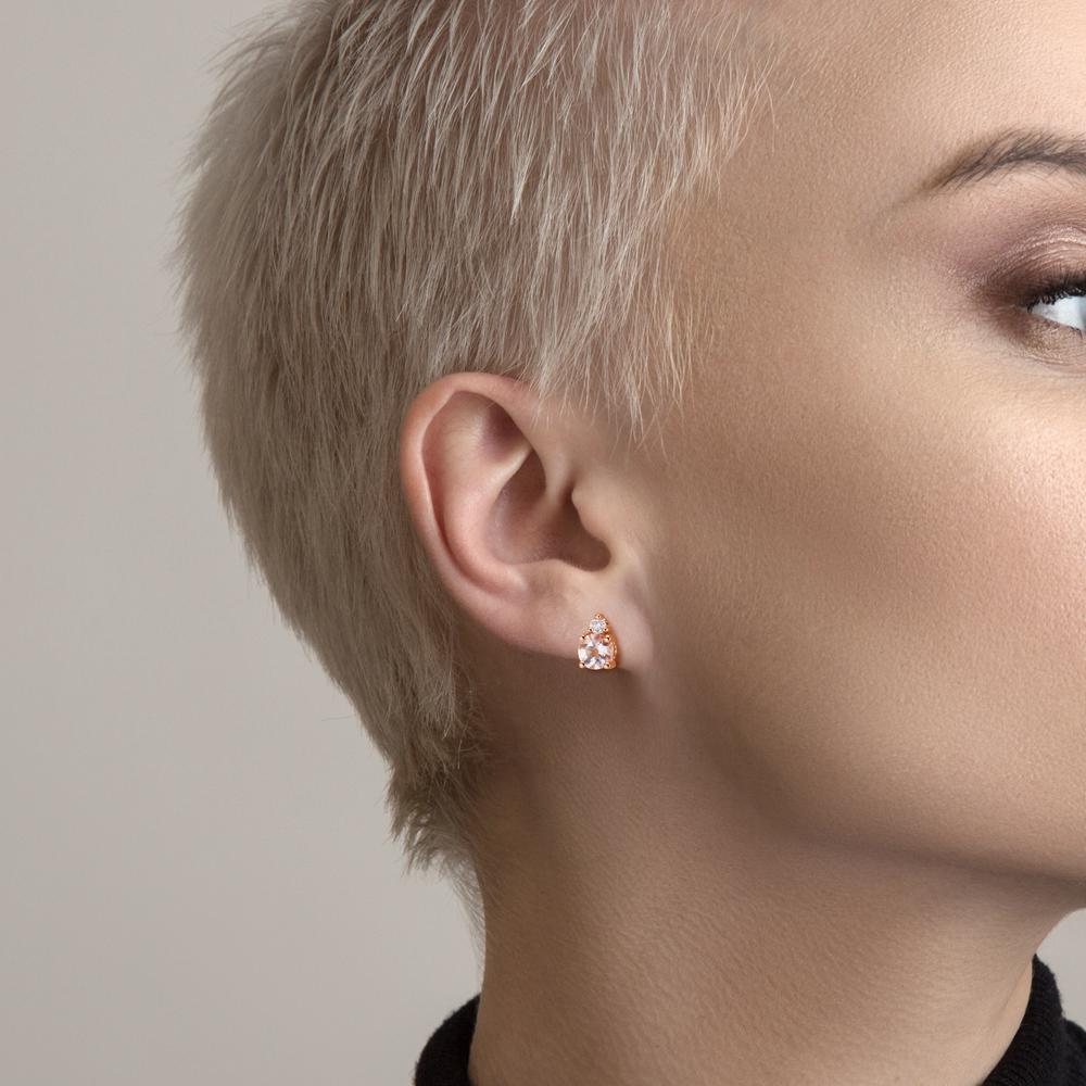 Örhängen med knoppar 750/18 K rött guld Morganit rosa, 2 stenar, diamant 0.05 ct, 2 stenar, w-si