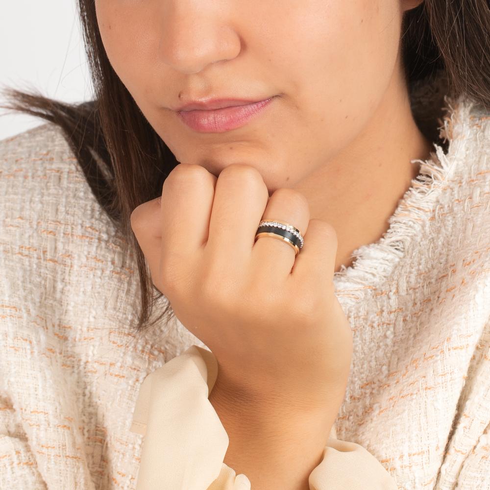 Ring set 750/18 K gult guld, 750/18 K vitguld, titan diamant 0.75 ct, w-si